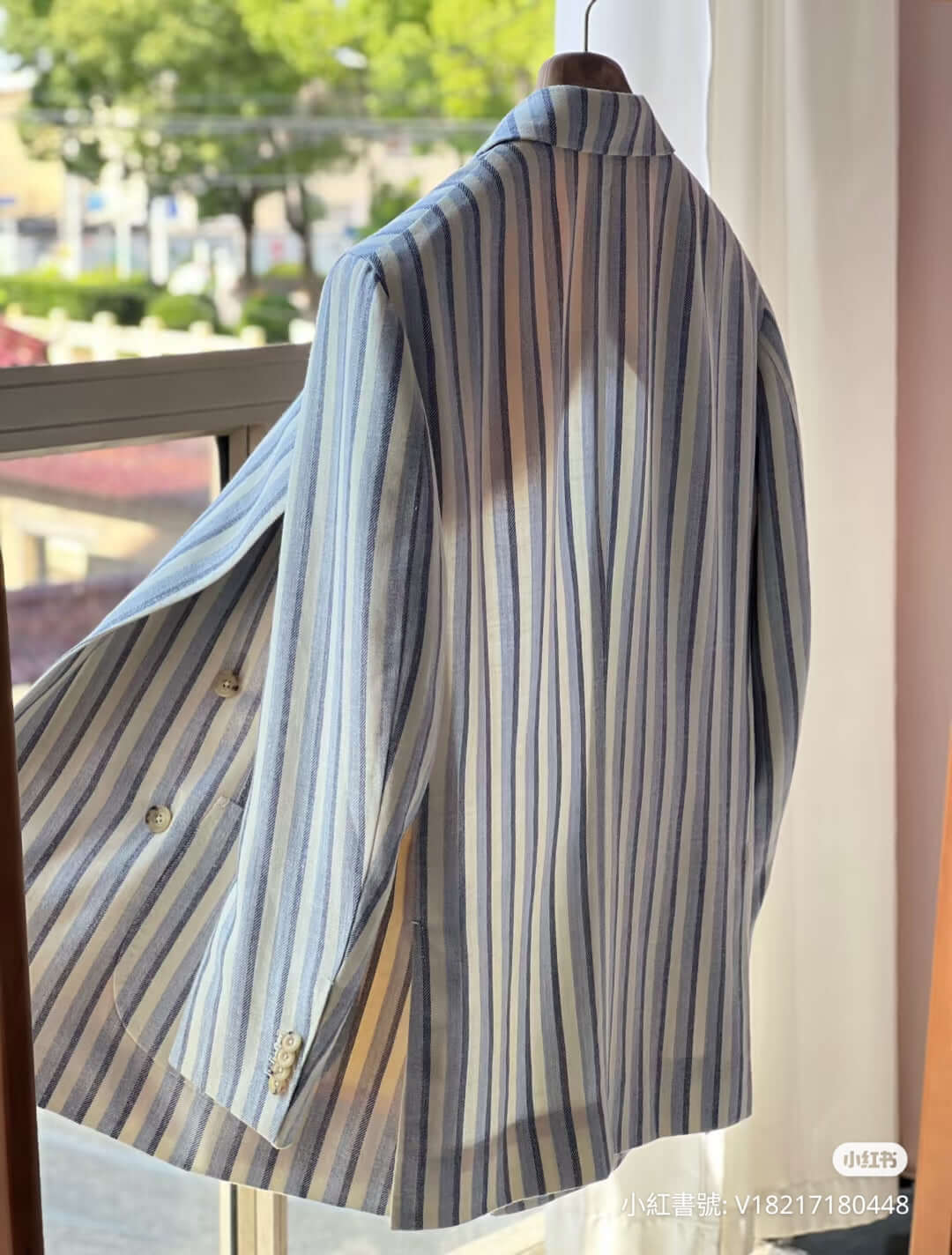 Vendor:Lanificio TessilstronaAnimal FiberTessilstrona Beige Stripe Wool & Linen Suit Fabric (664053)-3.5m