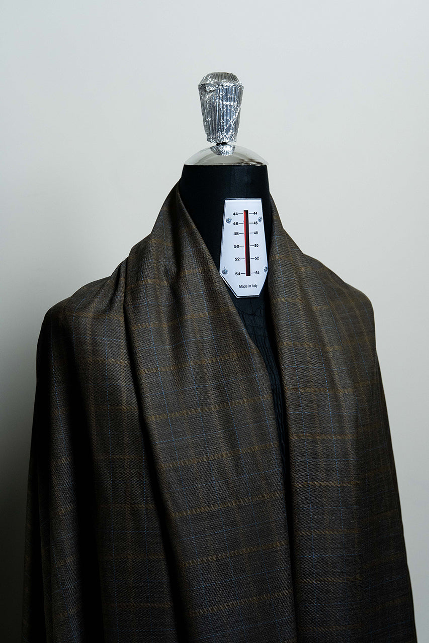 Brown Fancy Check Wool Jacket Fabric (V23627) -2.5m