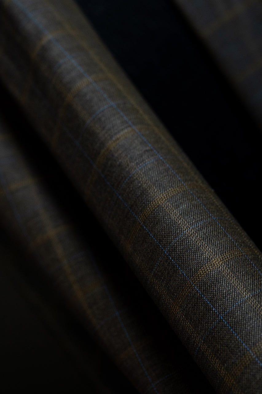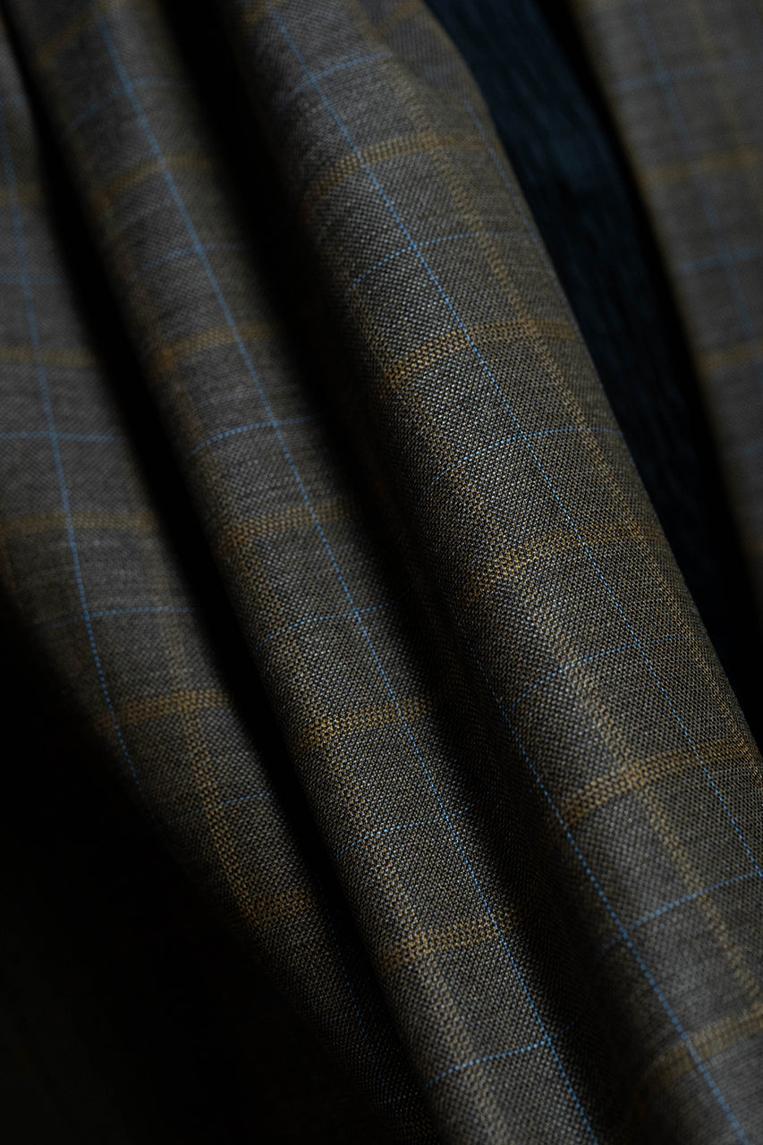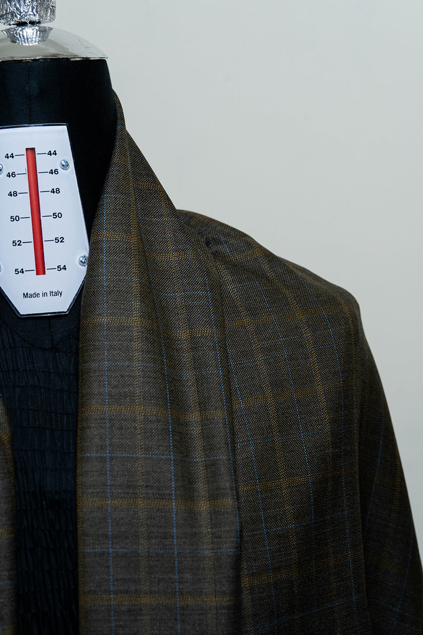 Brown Fancy Check Wool Jacket Fabric