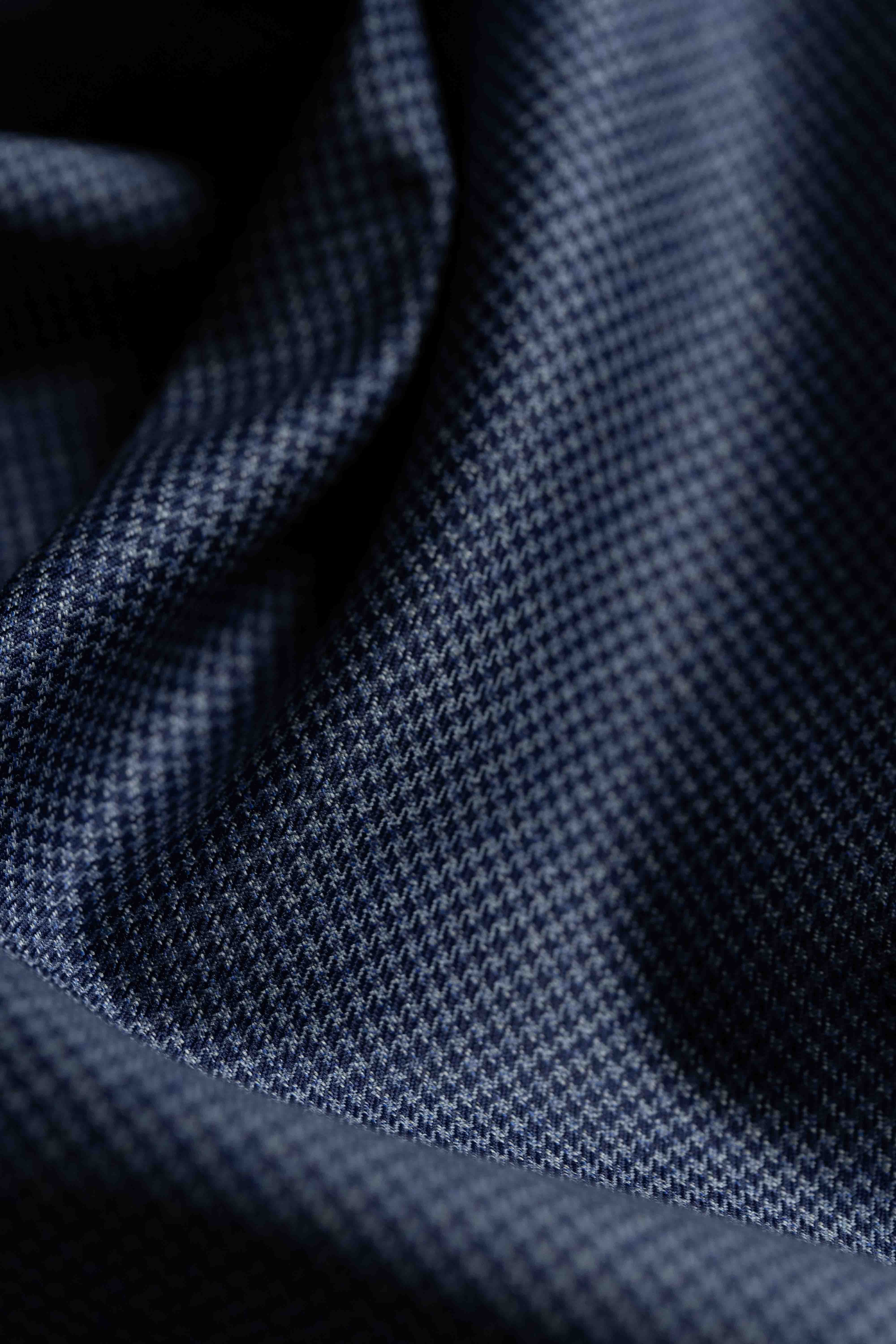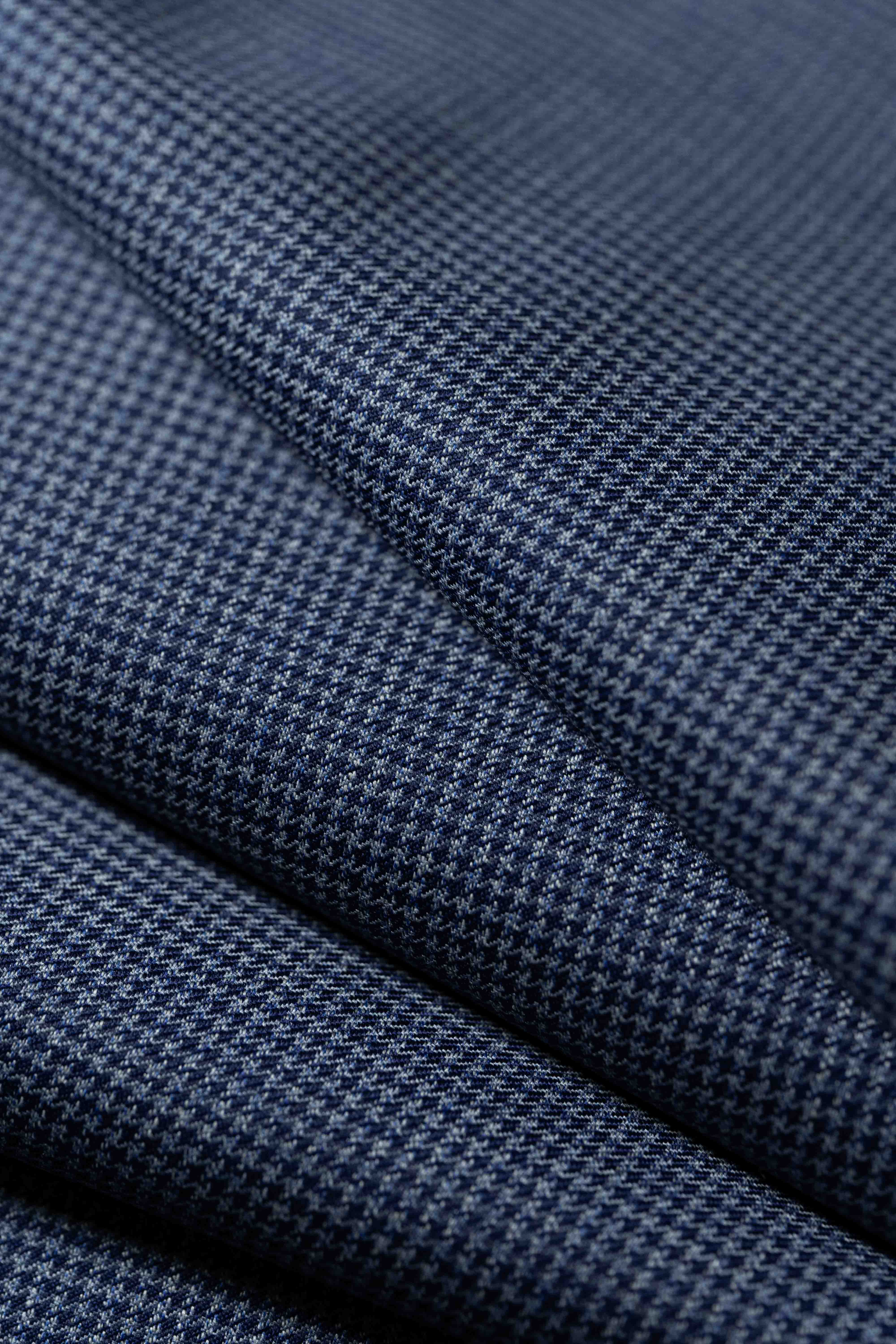 Loro Piana Blue Houndstooth 130's Merino Wool Suit Fabric (GC39636)-2m