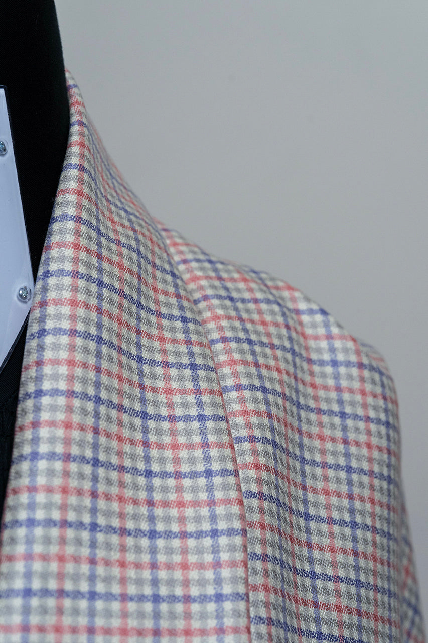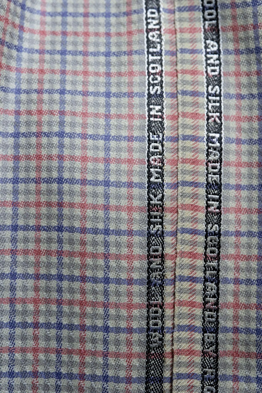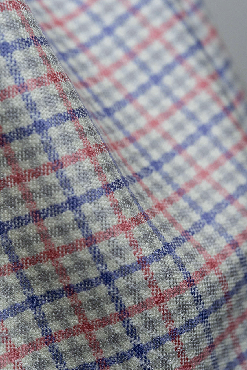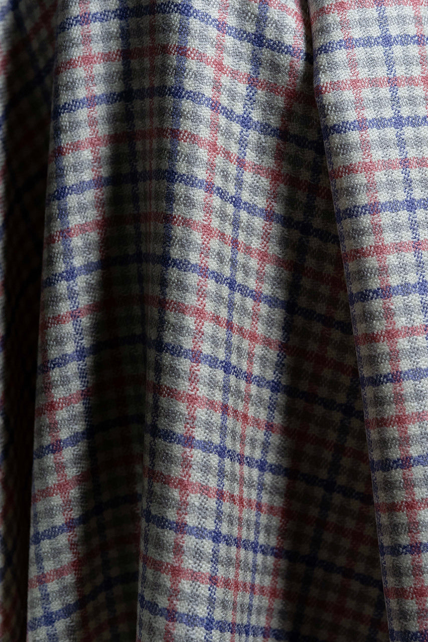 Pink Red Check Wool & Silk Jacket Fabric (V23650)-2.3m