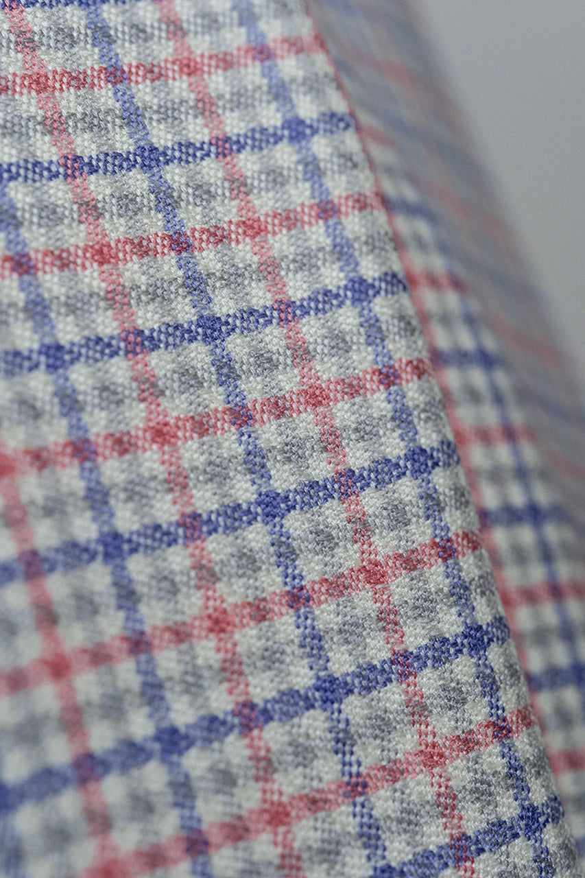 Pink Red Check Wool & Silk Jacket Fabric