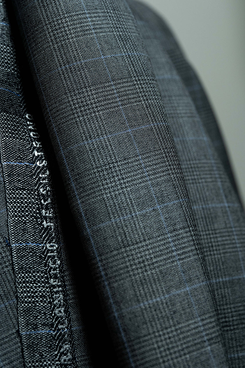 Tessilstrona Grey Check Wool & Silk Jacket Fabric